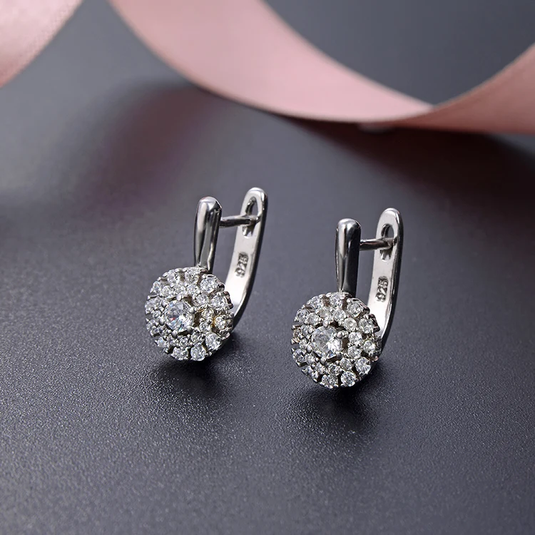 925 Sterling Silver Fine Clip-On Earrings Dainty Trendy Flower Design with Zircon Stone Wholesale Fashion Accessory